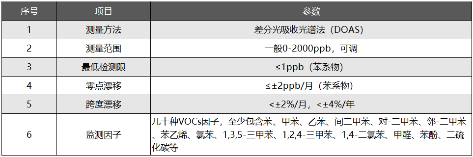 【關鍵點】:UV/IR-DOAS,幾十種有機物,ppb級,光路利于優化,維護量小!